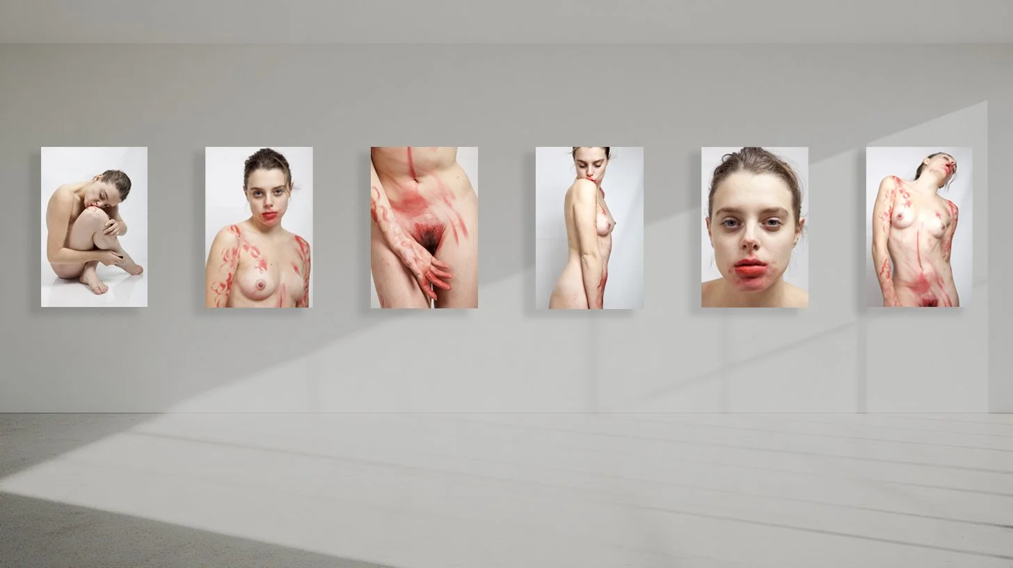 When the mouth can’t arrive, fingers carry the color—spreading desire into frustration, mapping the body by touch.
